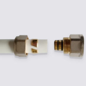 A compression fitting consists of a fitting body, screw cap, brass compression ring, O-ring, and gasket.